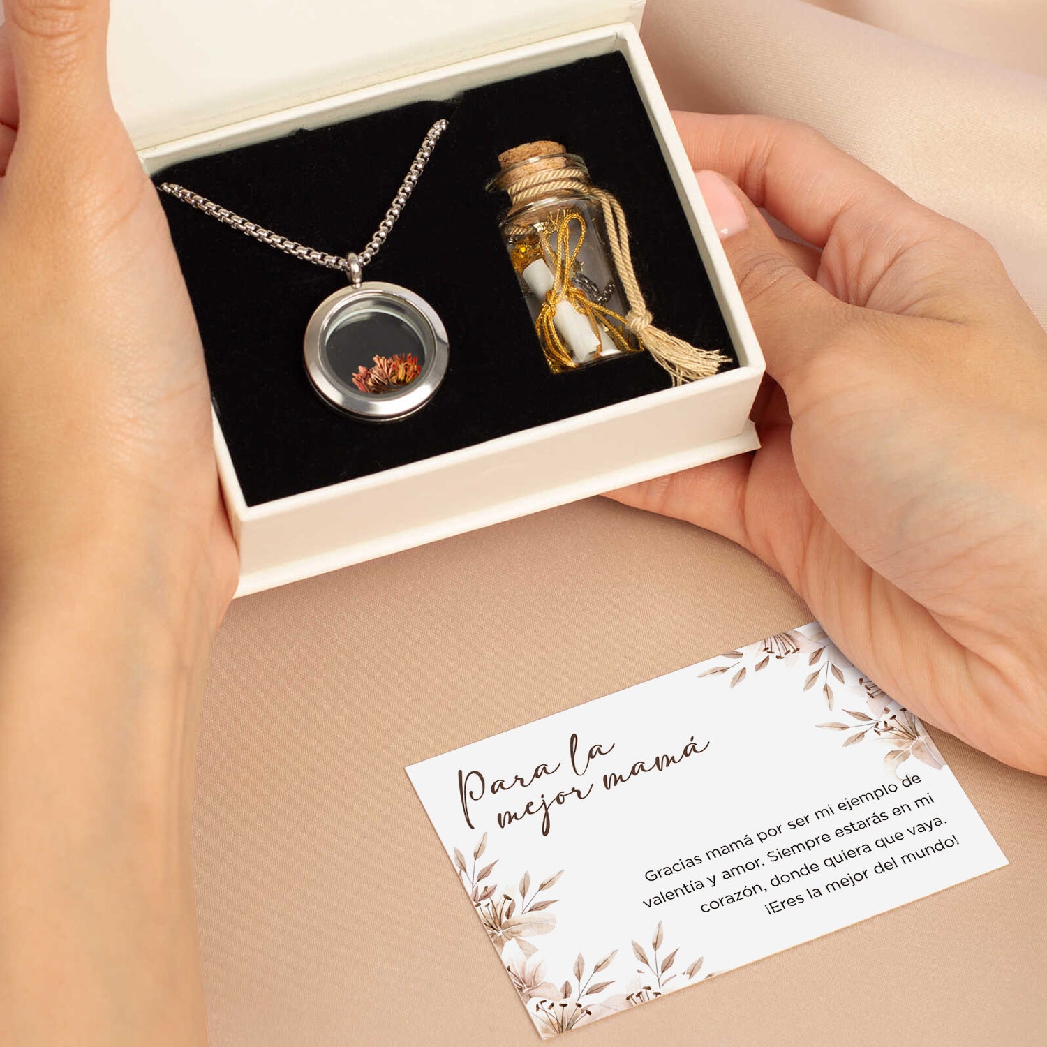 Hermoso Collar "De los Recuerdos". Te permite guardar y conservar pequeños tesoros con significados especiales, o un mensaje personal que es importante para ti o para esa persona especial. ¡Una joya con un significado único y personal!. 🧡